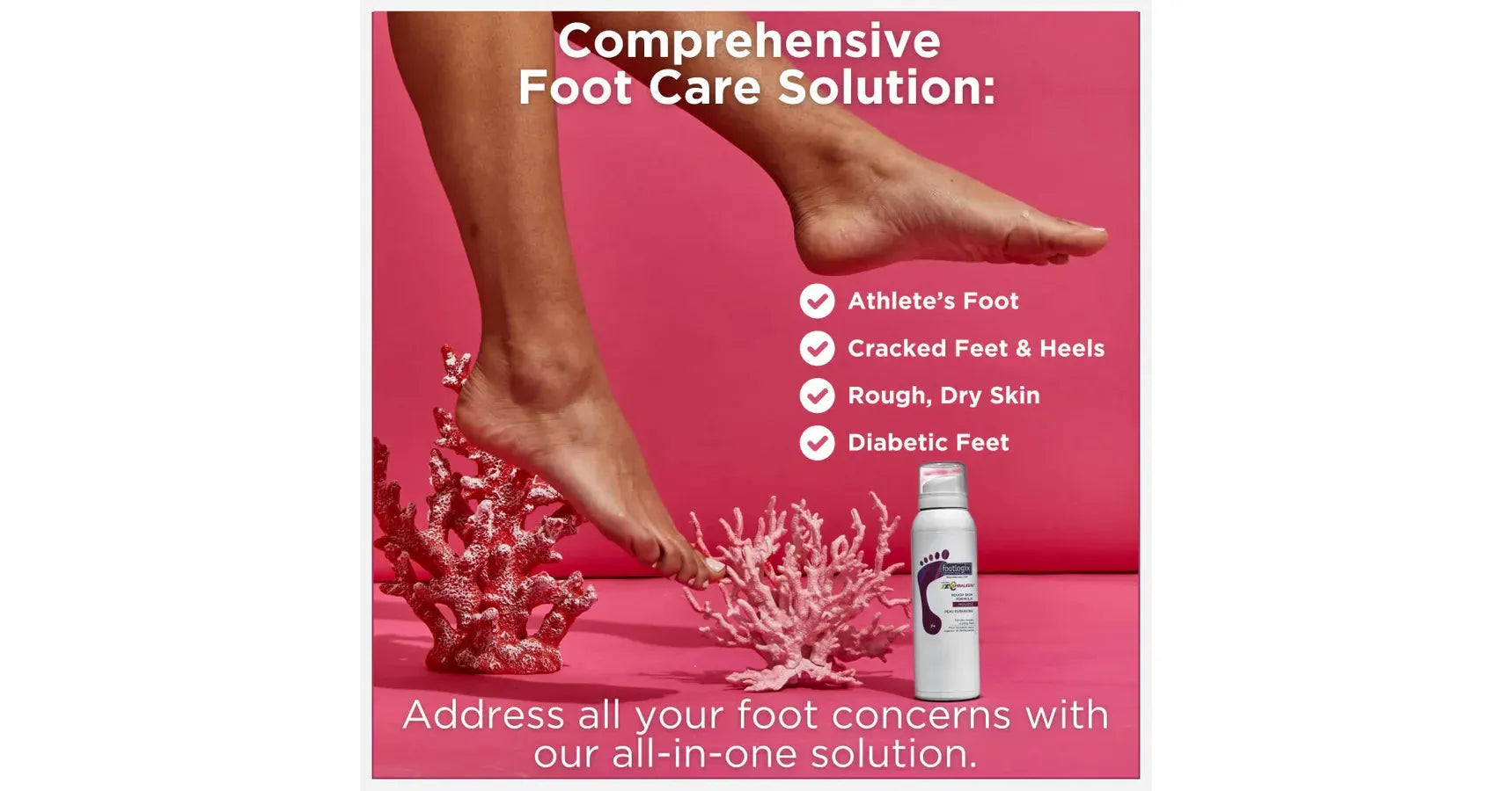 Footlogix® Rough Skin Formula (Mousse):A lightweight, fast-absorbing mousse that deeply hydrates rough, dry feet and helps restore skin texture with regular use.